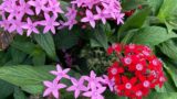 こちらは、散歩で見かけた少しピンクに近い赤いオシロイバナです。