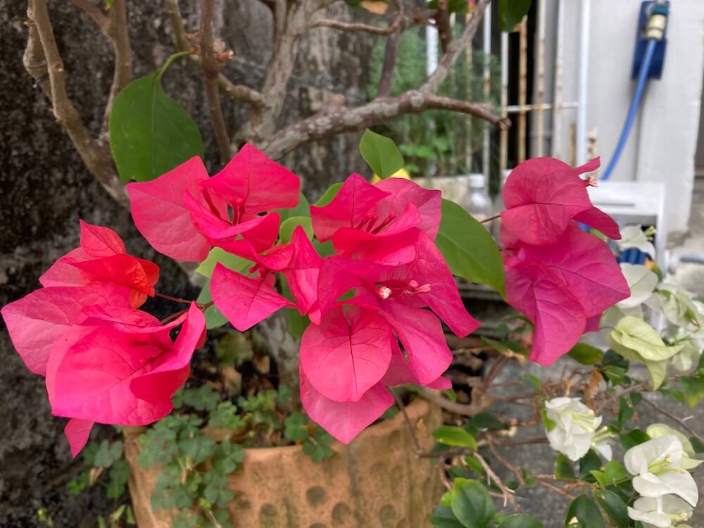 ブーゲンビリアが色鮮やかに咲いている季節が、沖縄の冬なんだなぁと思います。