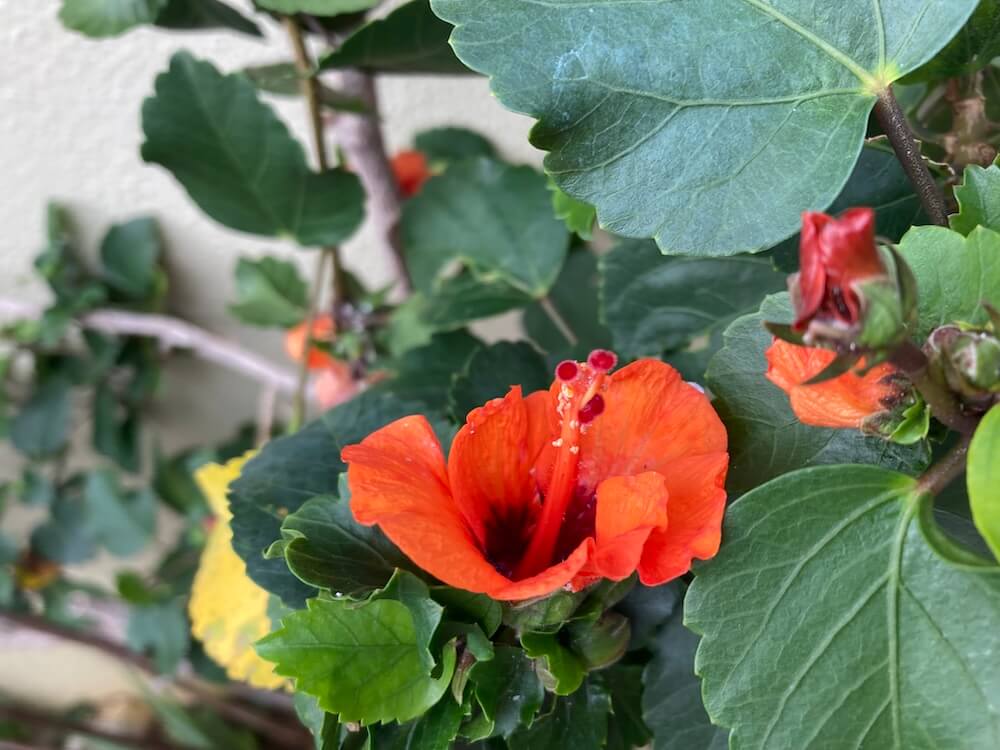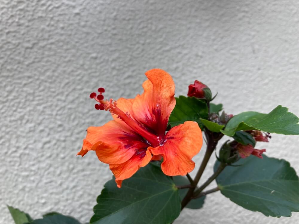 そしてこちらは少し小さめのオレンジ色のハイビスカスの花です。