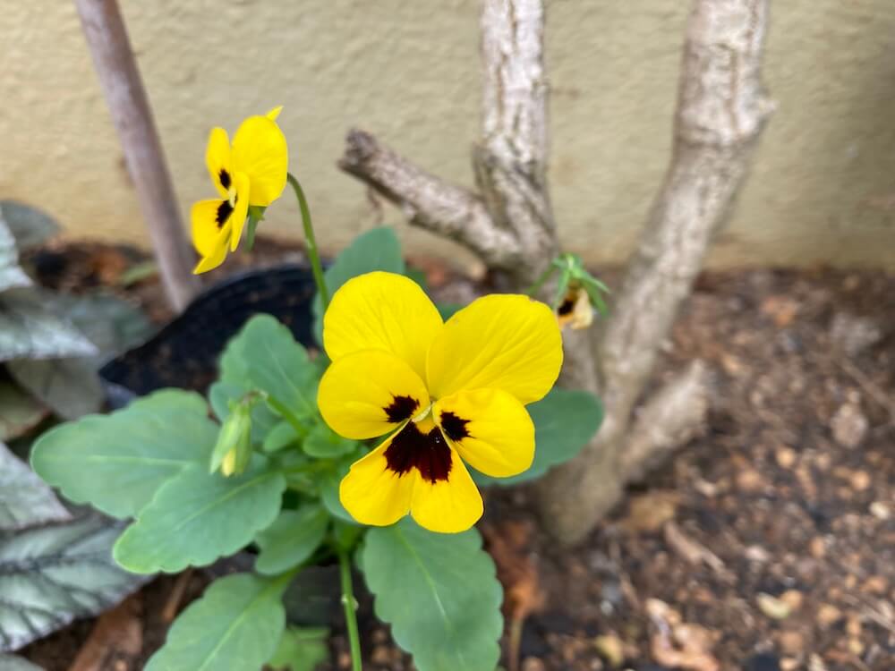 まず小さなビニールポットの中で元気に咲いていたビオラが可愛かったです。