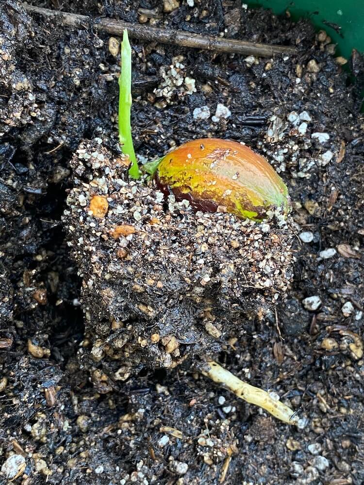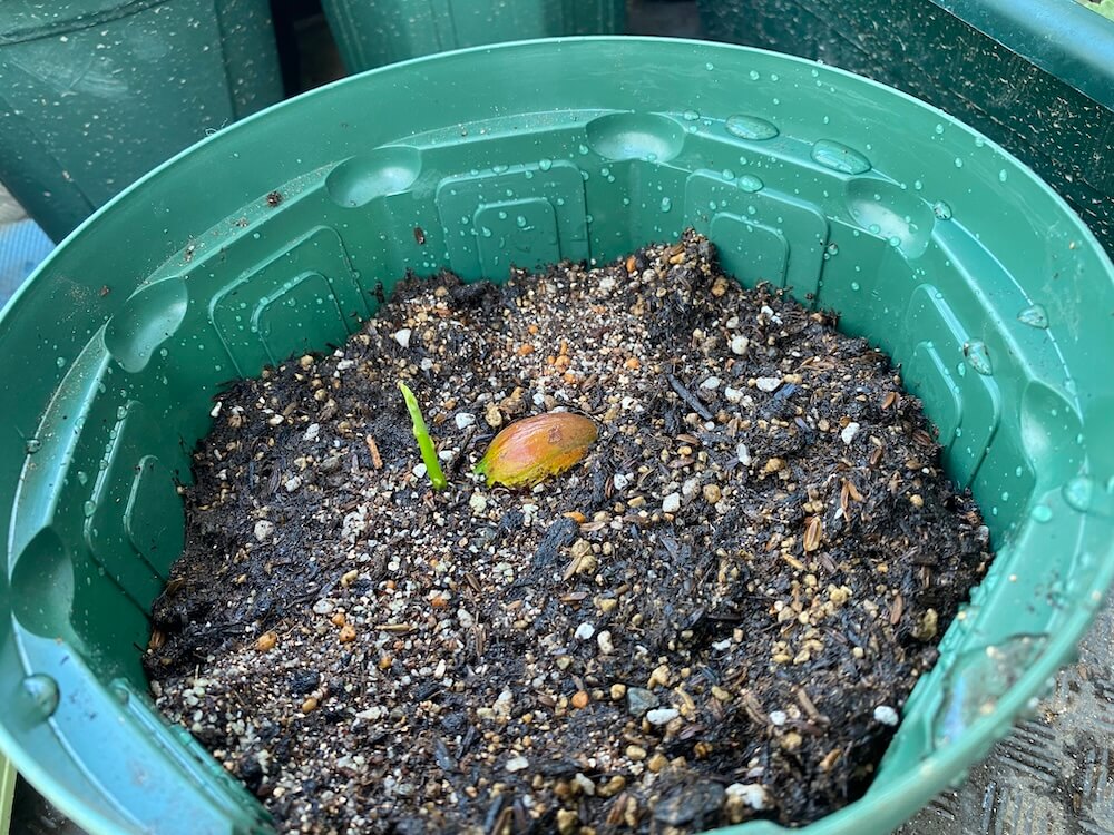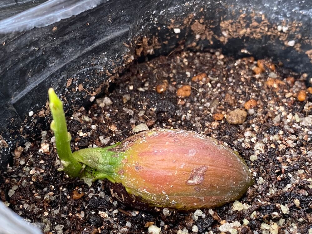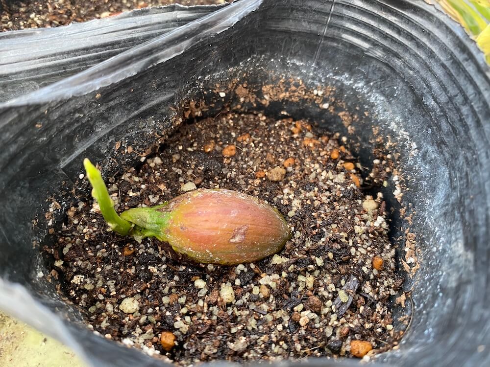 先日、発芽したと記事にしていたカニステルの新芽がかなり伸びてきたので、植木鉢に植え替えました。