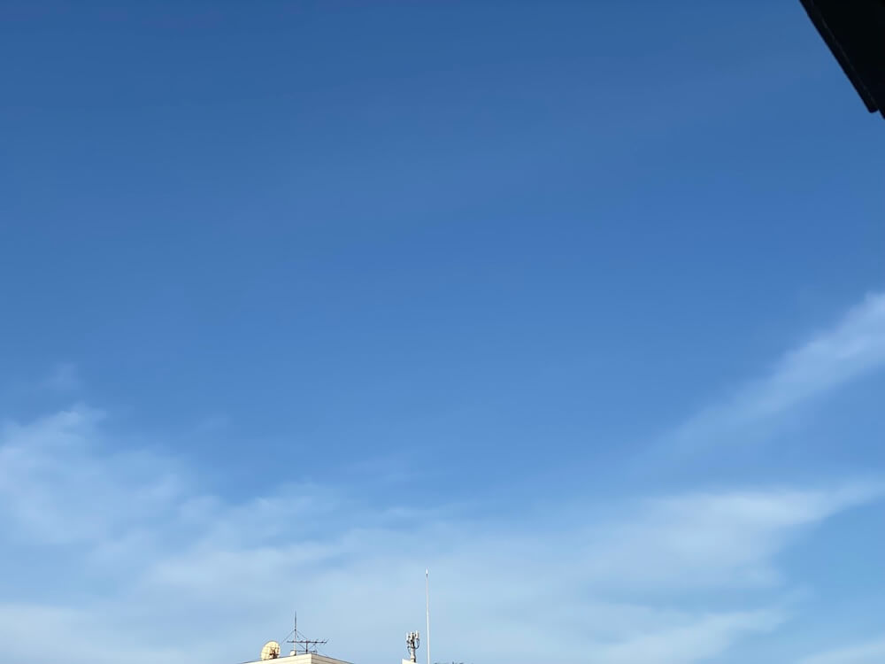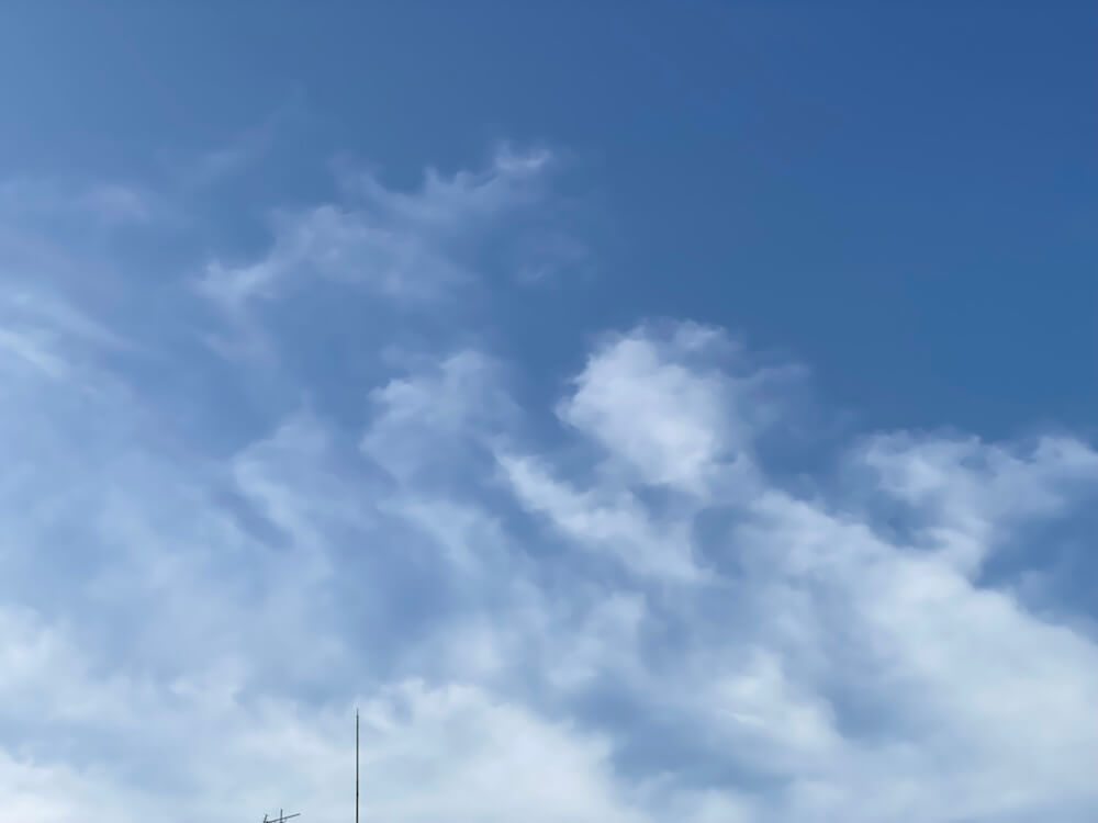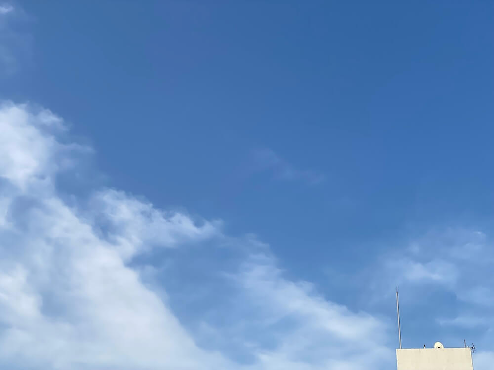 ベランダからの青空と白い雲、キレイです。