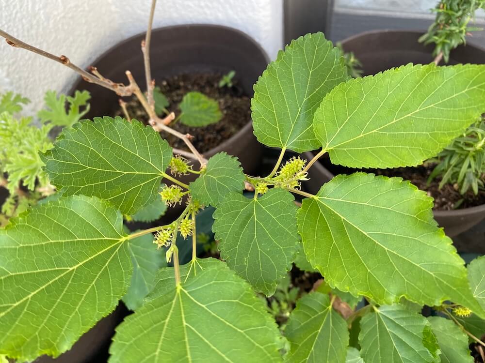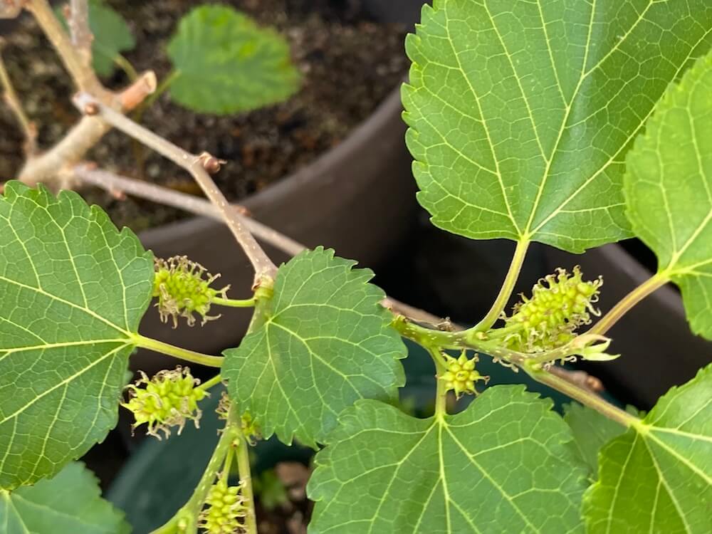 マルベリーは、花から青い実になってきています。
