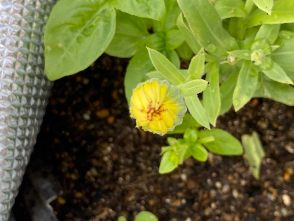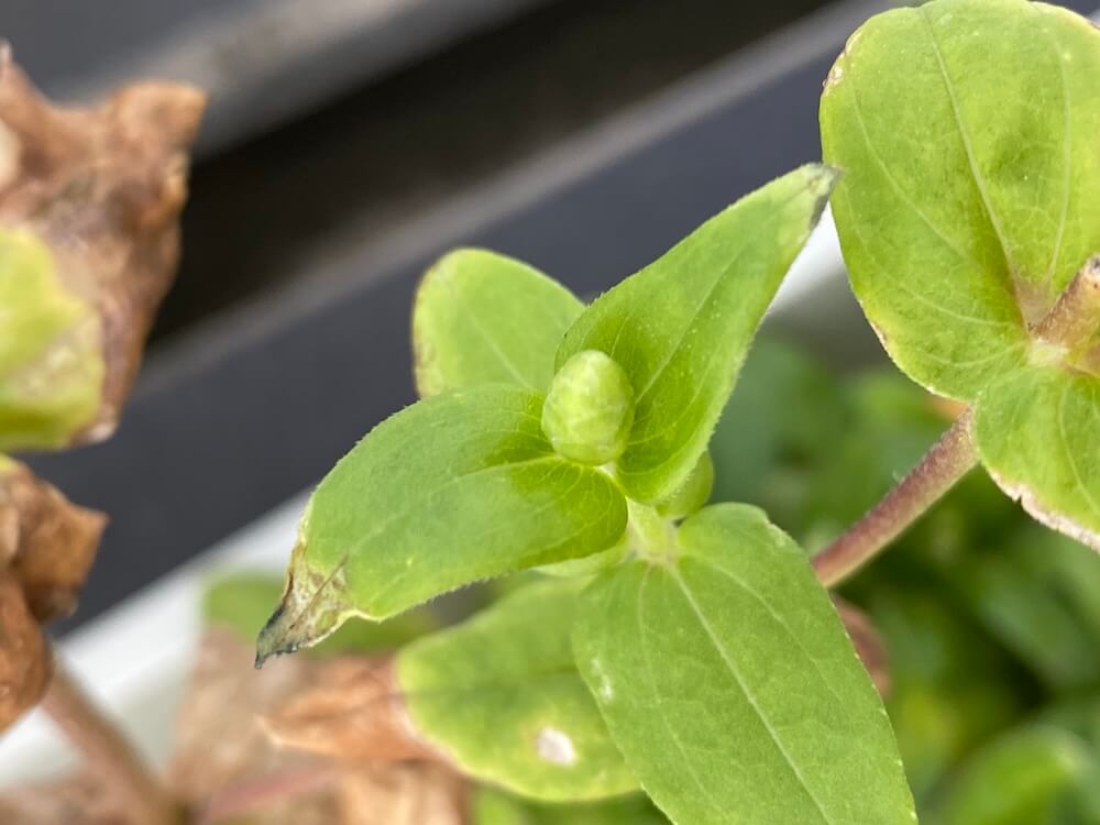 こちらは完全に終わったと思っていたジニアに新たな蕾を発見です。