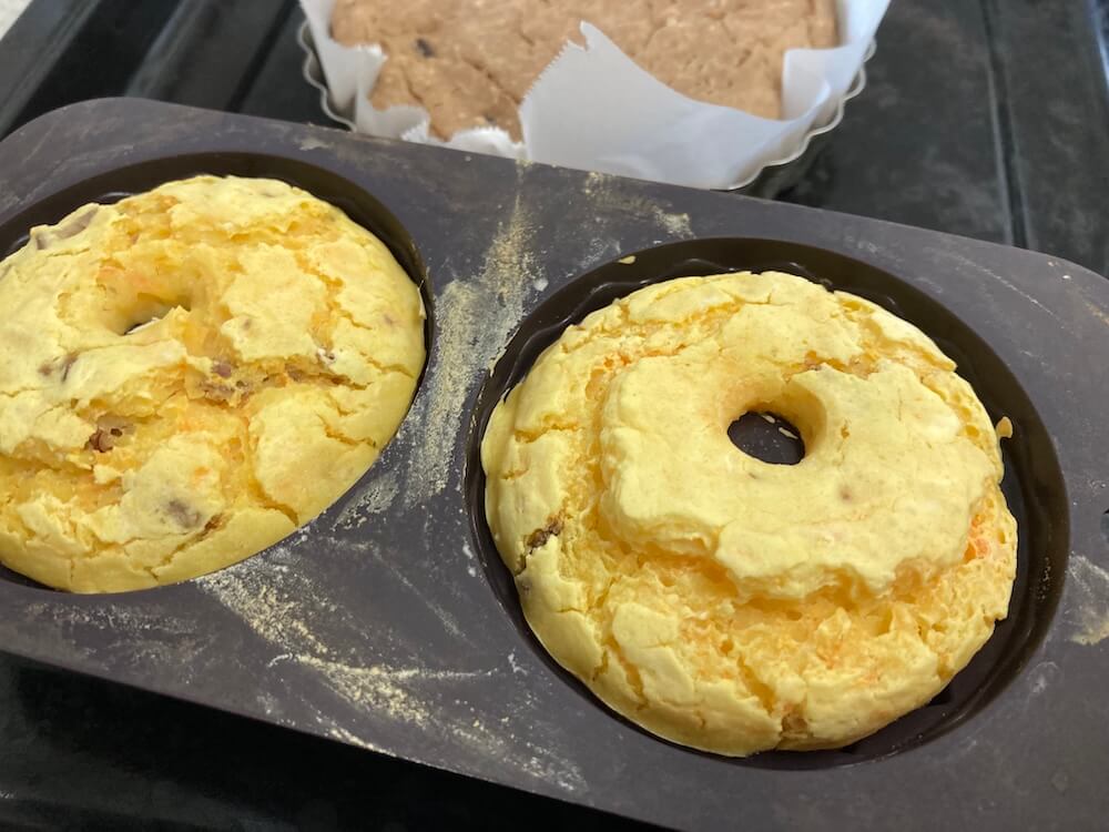 ただすりおろし人参を加えて、砂糖の代わりに刻んだデーツを加えて米粉:おから=5:1にしています。