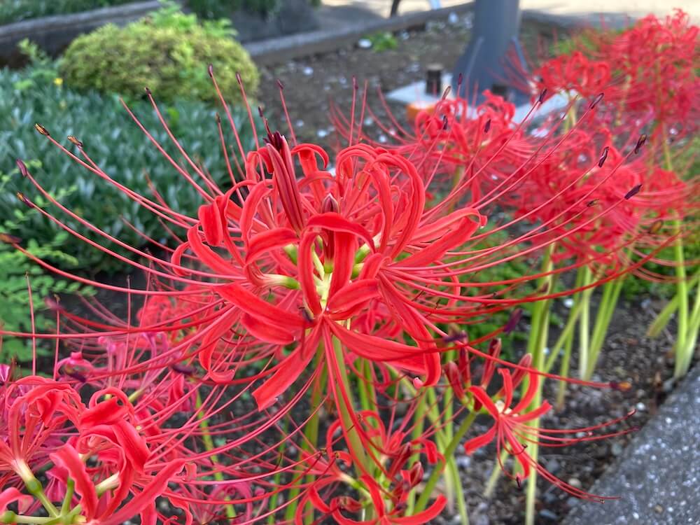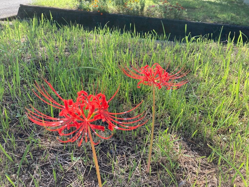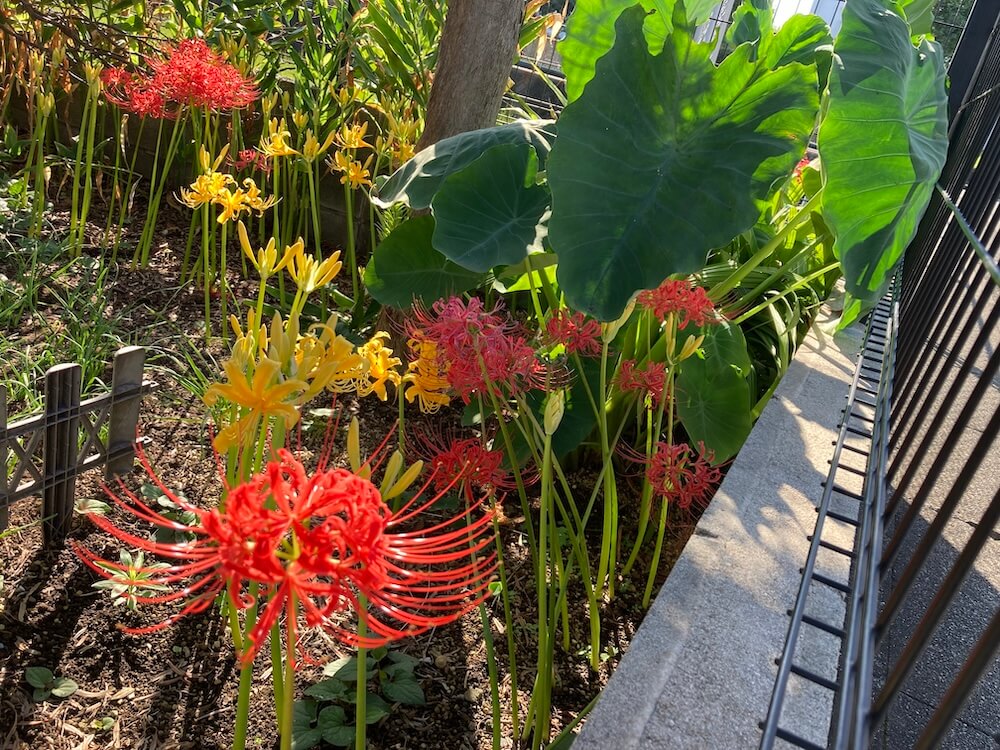 赤色も薄いピンク色も黄色も、一斉に咲いていて、綺麗だな〜、お彼岸だな〜と思いました。