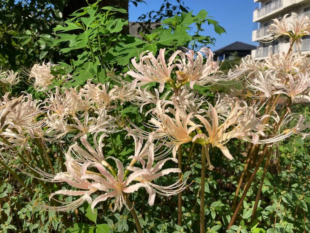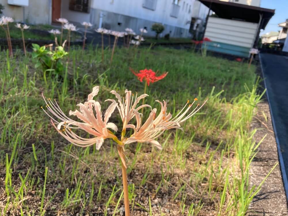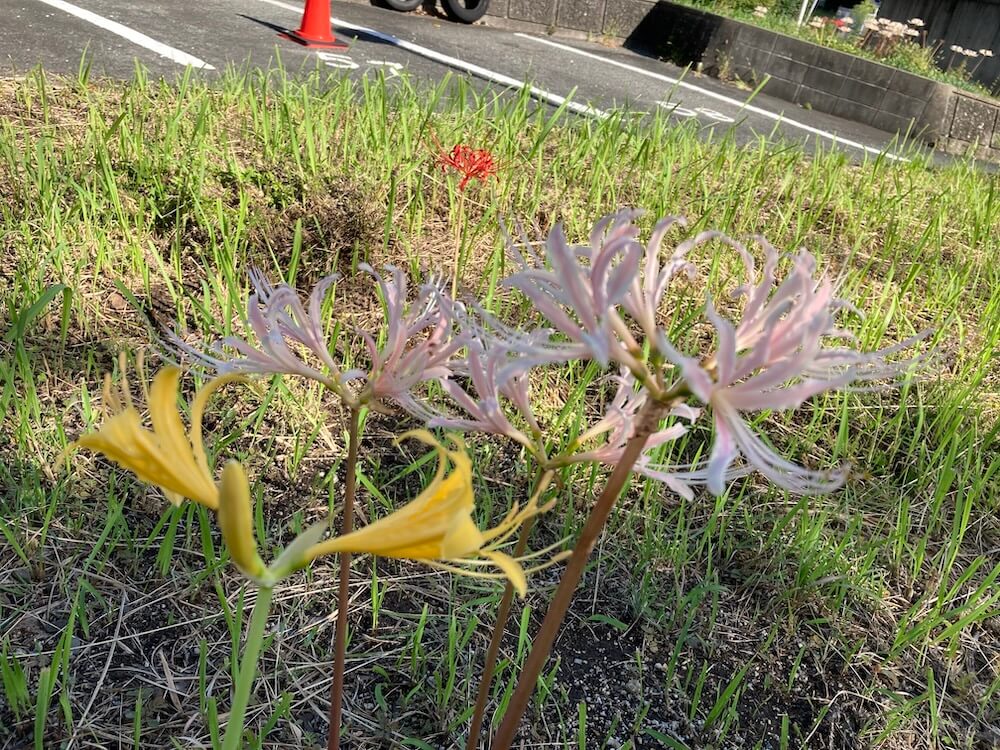 しかし数年前から黄色や薄いピンク色の彼岸花も一緒によく見かけるようになりました。