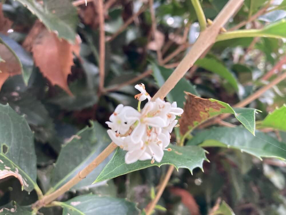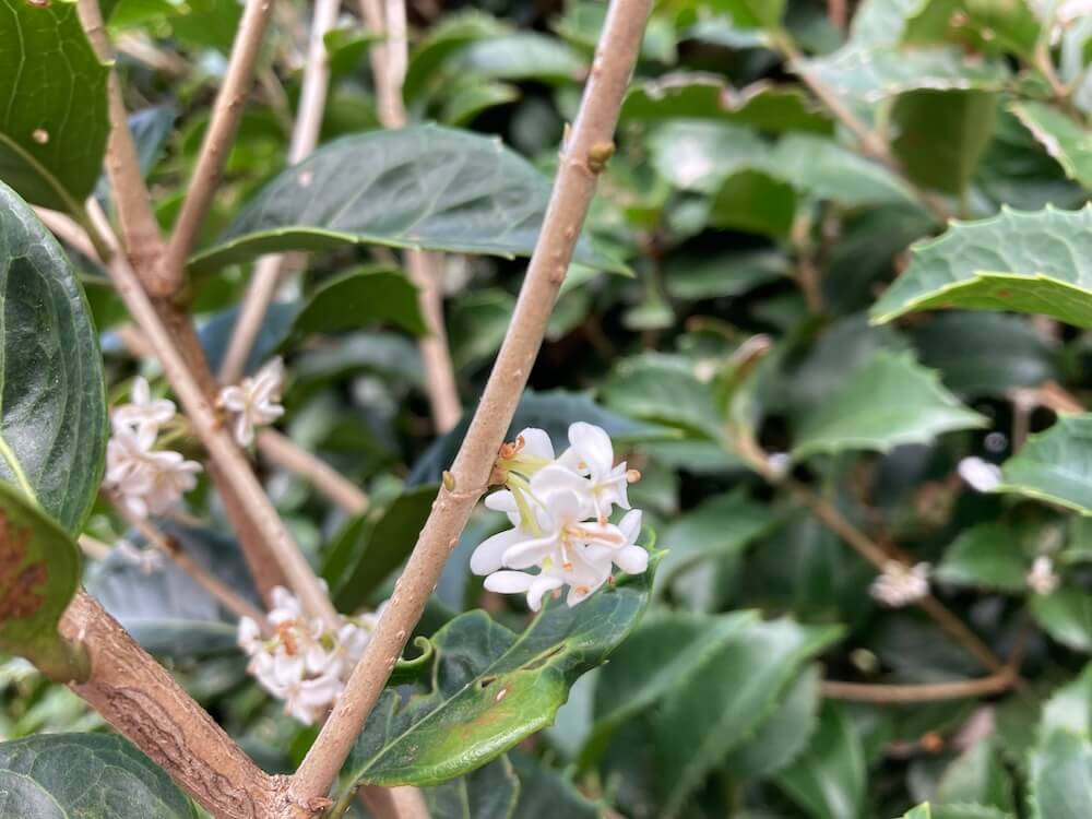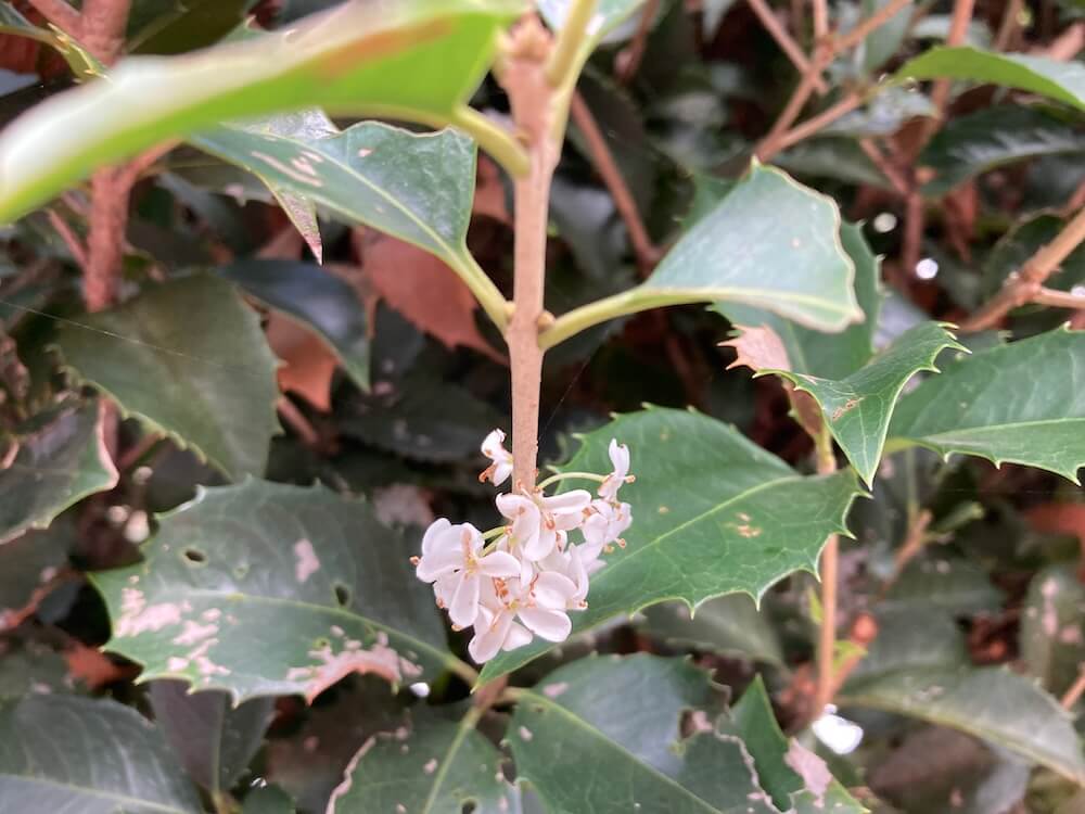 The flowers looked similar to silver osmanthus, and I learned that Fortune’s osmanthus is actually a hybrid of holly and silver osmanthus.