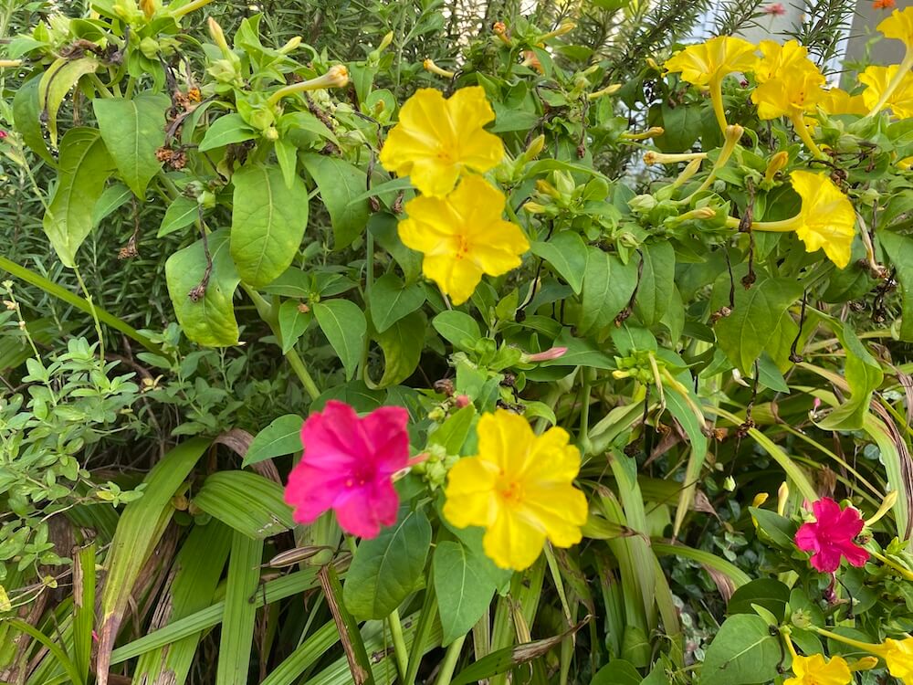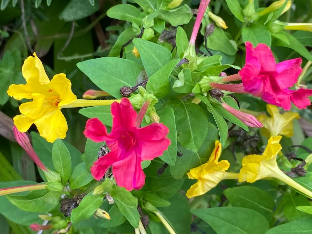 オシロイバナは、株が土の中に残っているようで、冬には地上部が枯れますが、夏になると花が咲いてくれてキレイです。