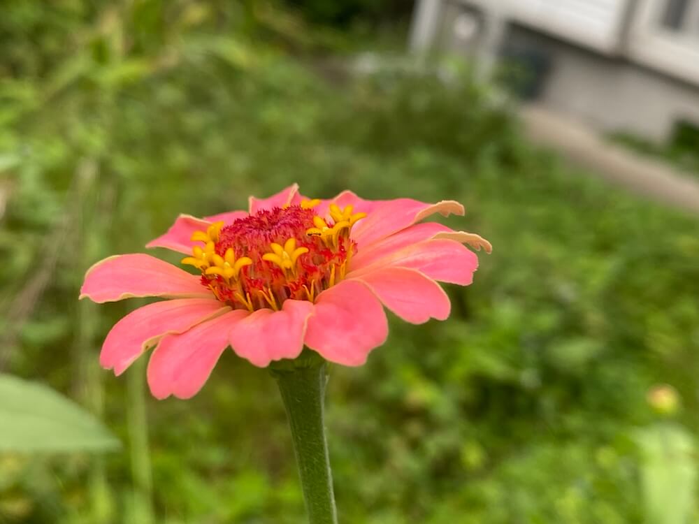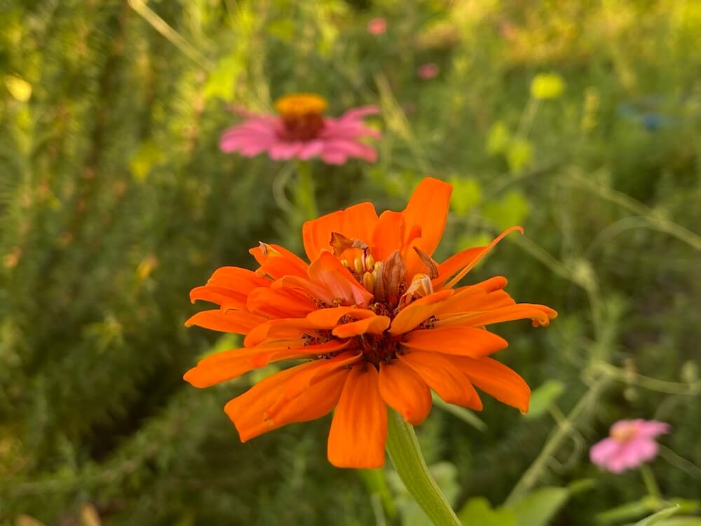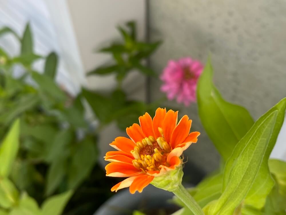 ピンク色ジニアの種から何故かオレンジ色の花も咲いてビックリ!突然変異?