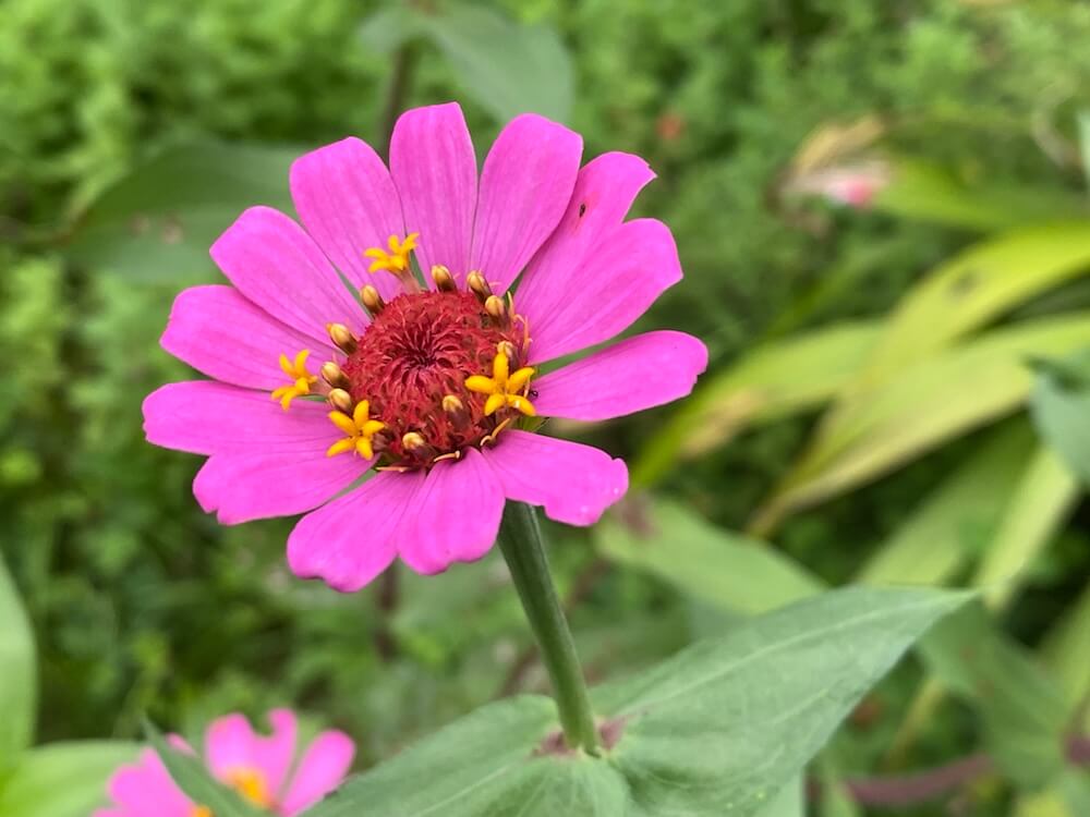 同じ種ですが、本来のこのピンク色のジニアから、ほんの少し色が違うジニアまで色々でキレイなのです。