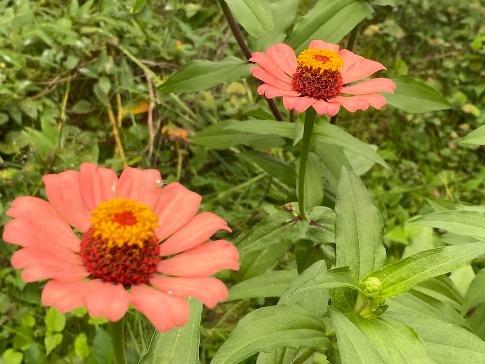 The zinnias and four o’clock flowers (Oshirobana) are blooming in my garden.