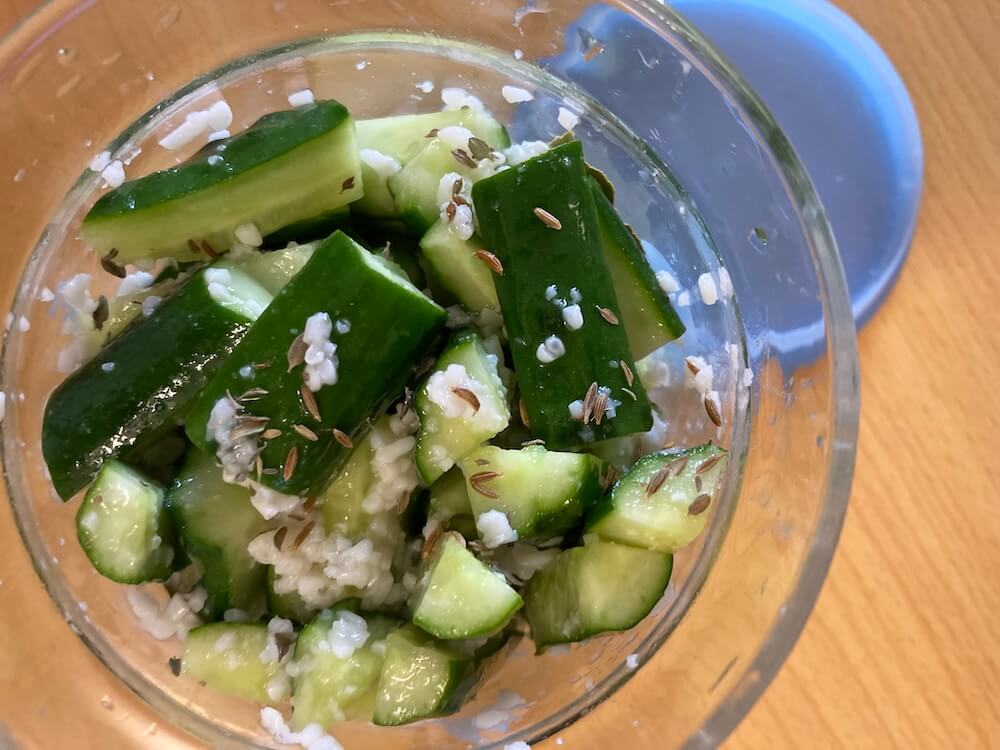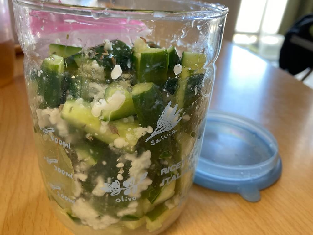 常備菜のきゅうりのハーブ塩麹漬けとアボカドのヨーグルト塩麹和え、2つとも美味しいので、また作りたいと思います。