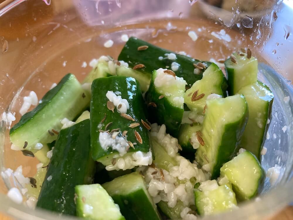 きゅうりを食べやすい大きさにカットして塩を振っておく