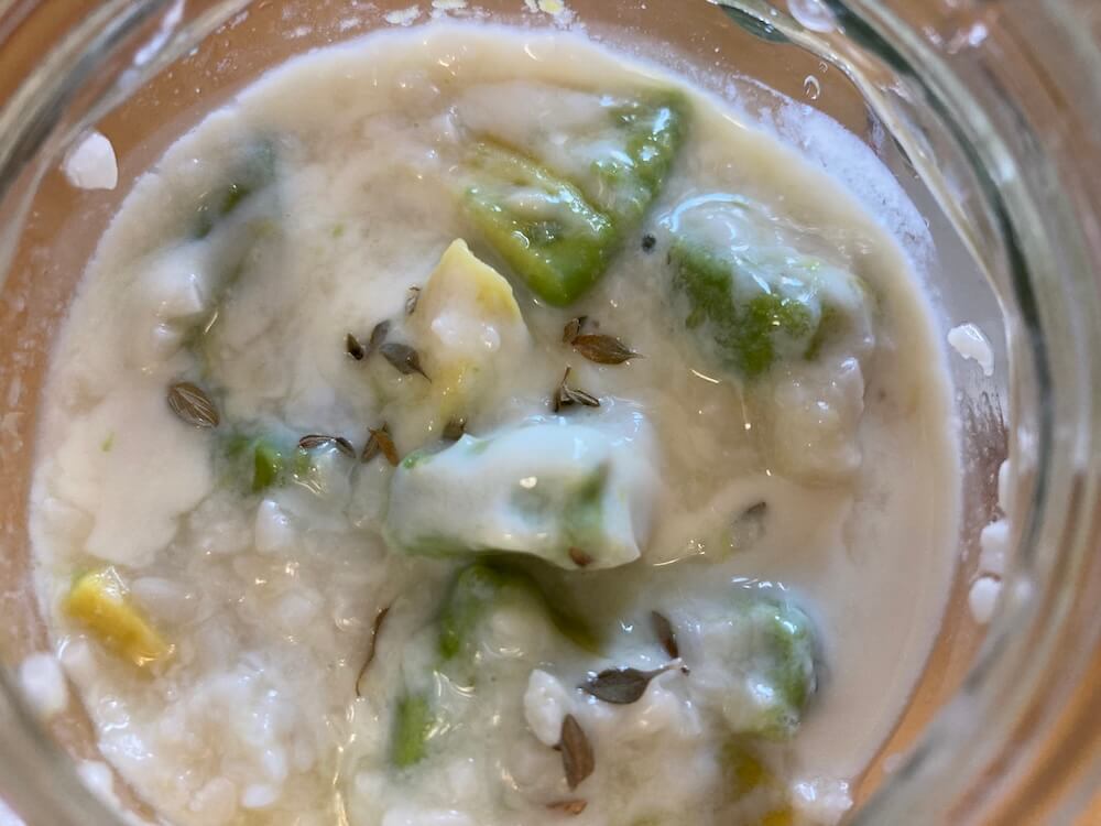 林檎酢、豆乳ヨーグルト、塩麹、レモンタイムを入れて、よくかき混ぜる。