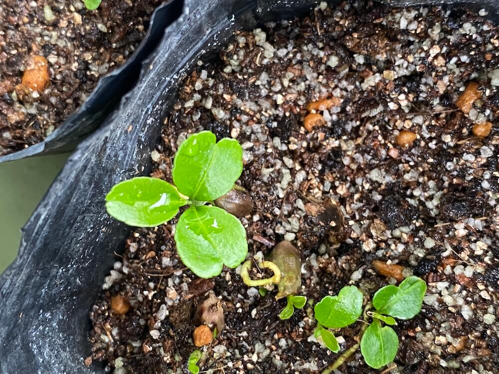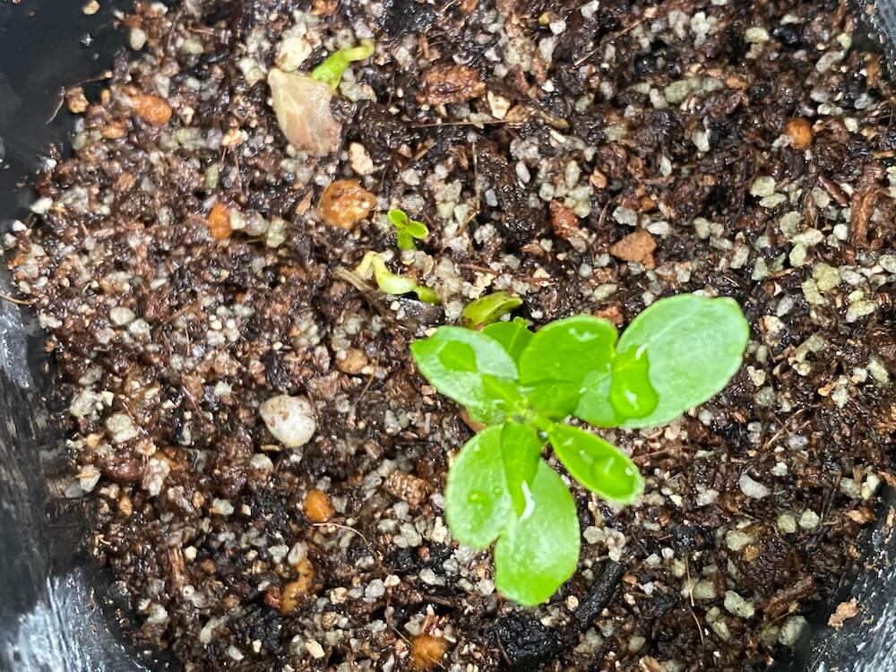 あれから13日くらい経過しているのですが、本葉が増えて、艶々しながら、少しずつ成長中です。