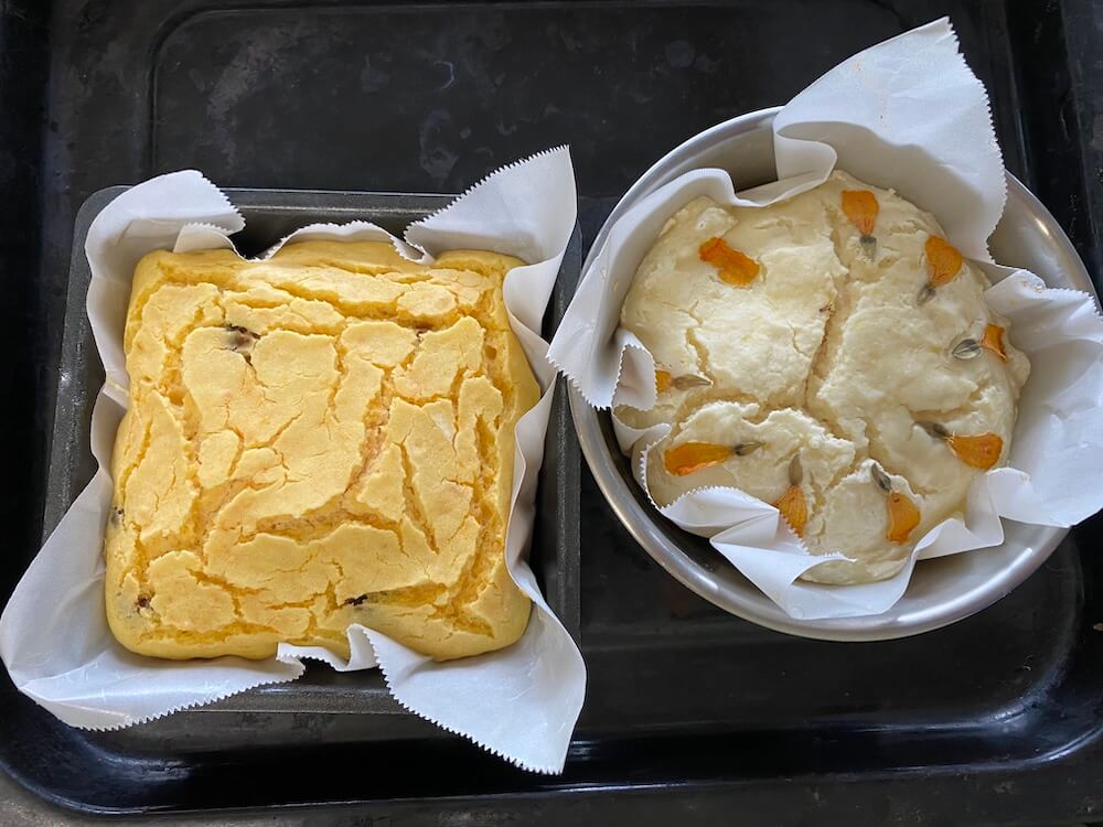 他では、ジニア載せ塩麹豆腐パンと人参おからケーキも作りました。