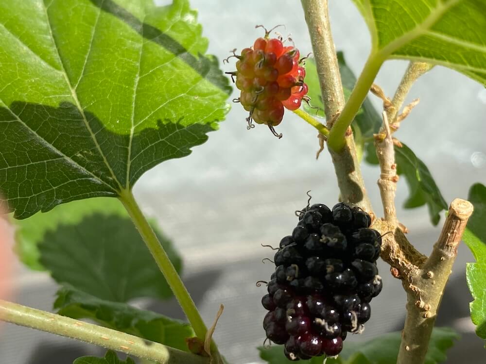 そんな天気なので、マルベリーの果実がついに熟しました^^