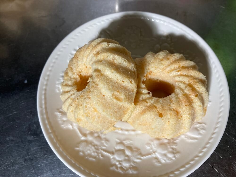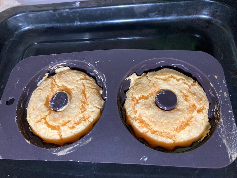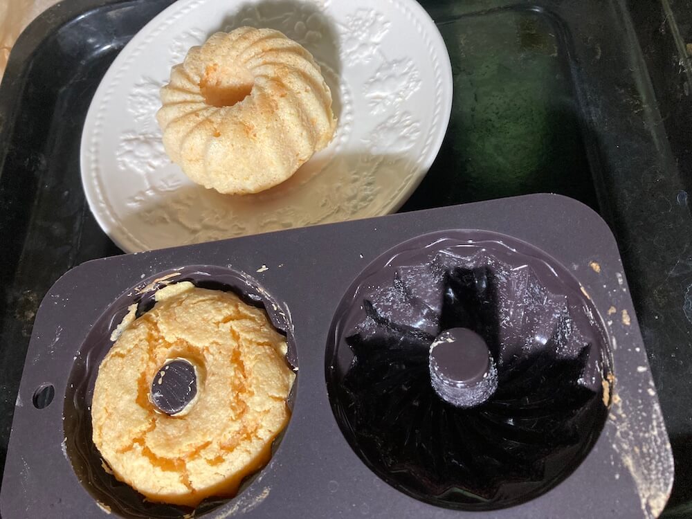 いつもはスクエア型で焼くのですが、今日は先日セリアで買った小さなドーナツ型みたいなクグロフ型で焼きました。
