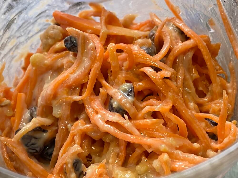 However, since my husband doesn’t like vinegar, I got a little creative this time and made the carrot salad without it.