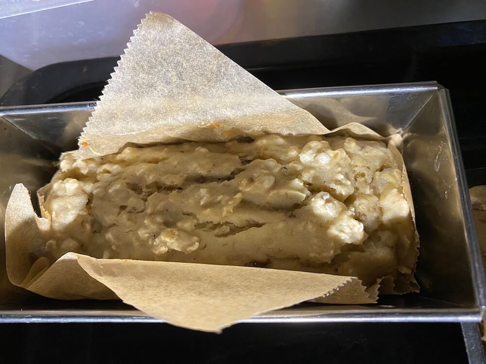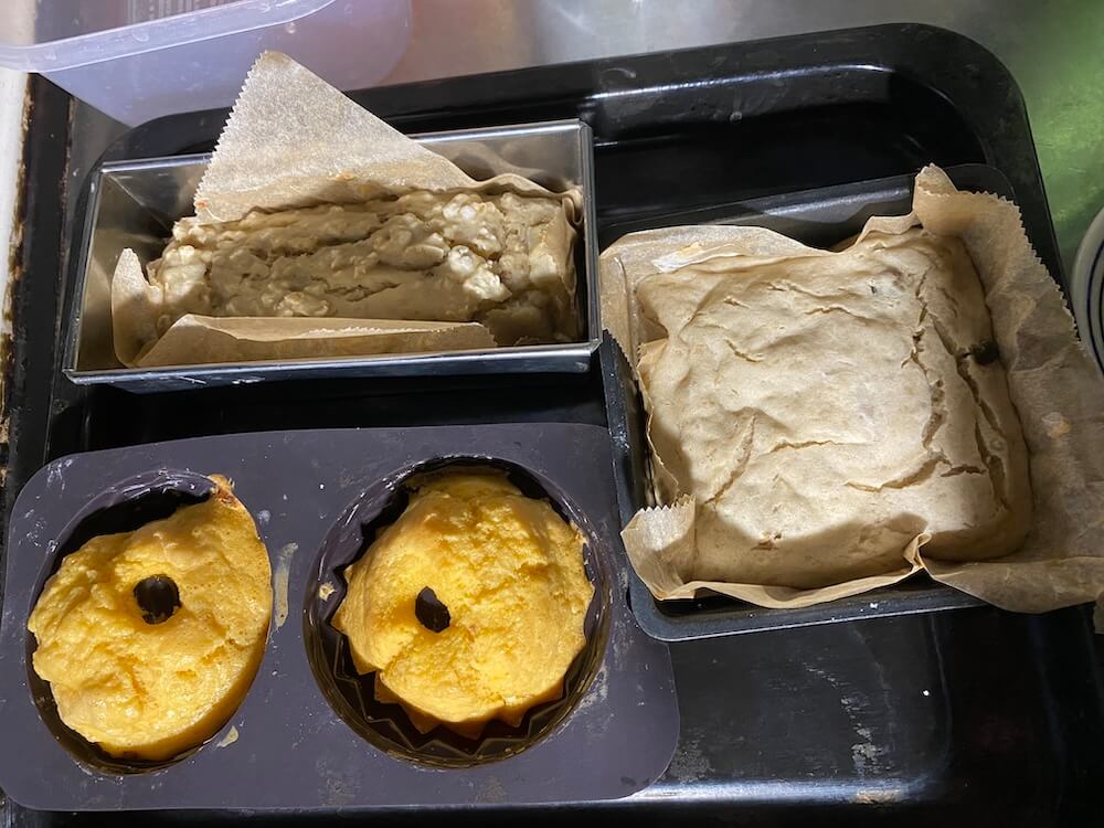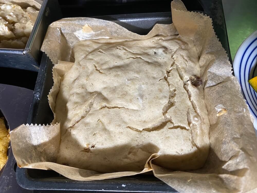 今日はデーツの代わりにレーズンを入れてスクエア型で焼きました。