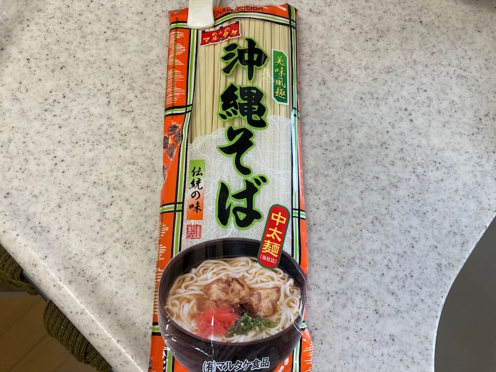 美味しかったのはこの乾麺の沖縄そばです。128円(税抜)くらいで凄く安かったと記憶しています。