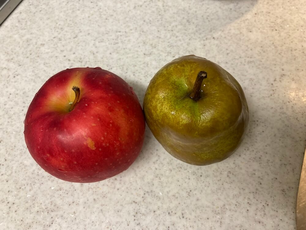 今朝は、昨日、スーパーの「かねひで」で購入したりんごを煮たり、洋梨をカットして冷凍したりしました。