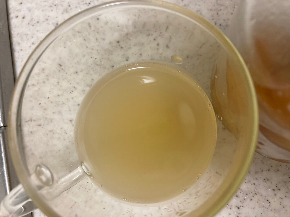 勇気を出して、液体(酵母液)を飲んでみたら、甘酸っぱくて少しシュワッとして美味しいです。