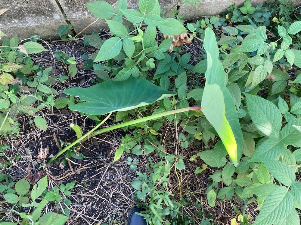 元々は、3年前の2022年に買ってきた里芋の1個を庭に植えてみたところから始まっています。