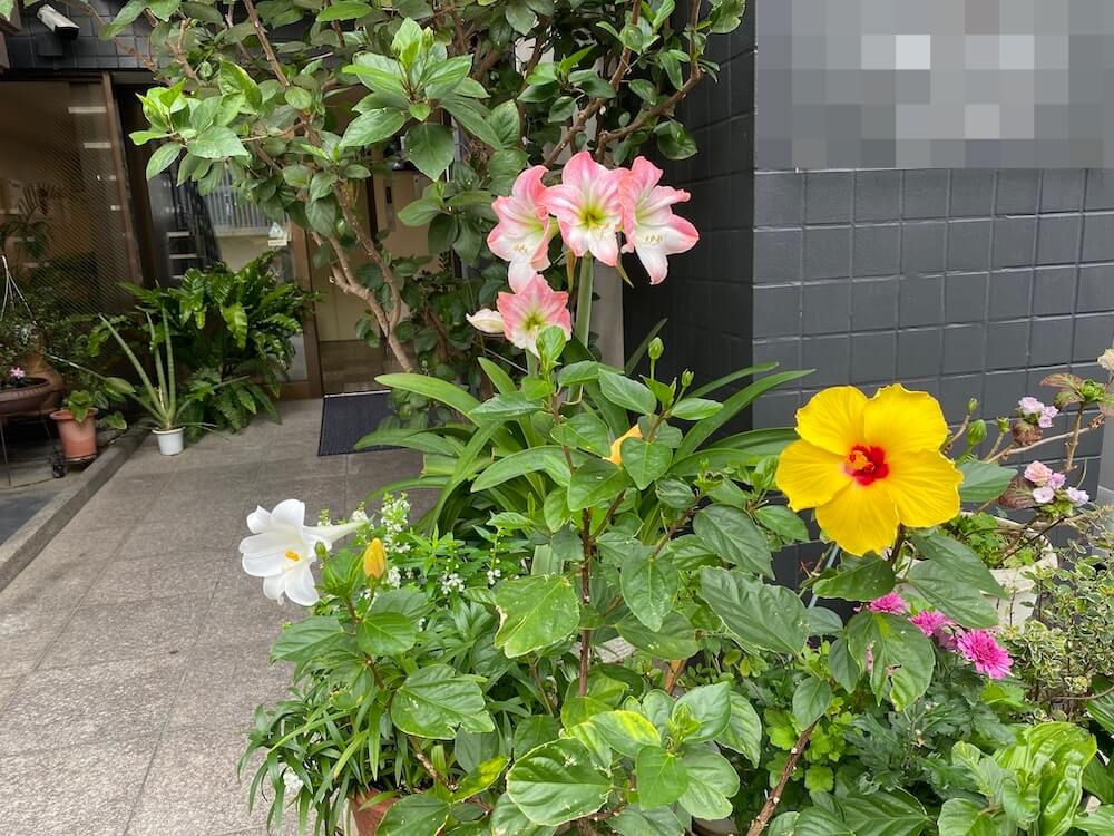 那覇は夏!白いテッポウユリの花、アマリリスの花、黄色いハイビスカスの花も、美しい!