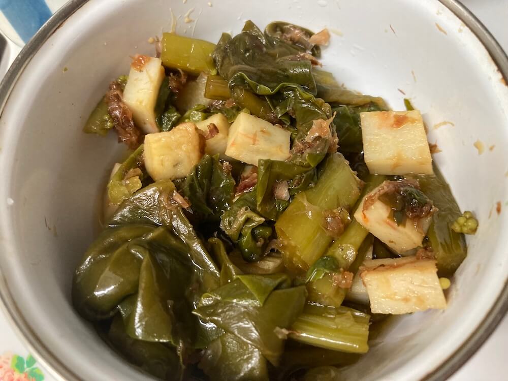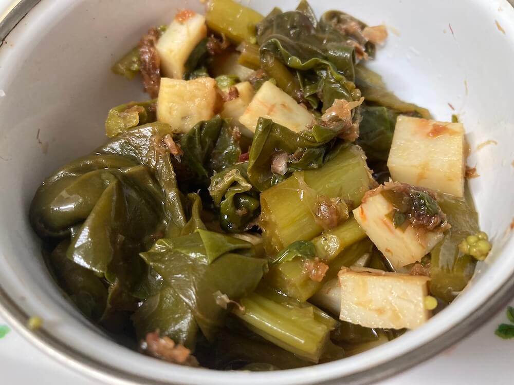 ツルムラサキとちきあぎと鰹節を、オイスターソースと醤油(1:1で)で和えたら美味しかったです。