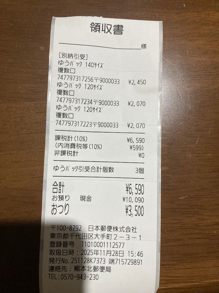 15時から17時の間に、ゆうパックの残り3箱の集荷もあります。