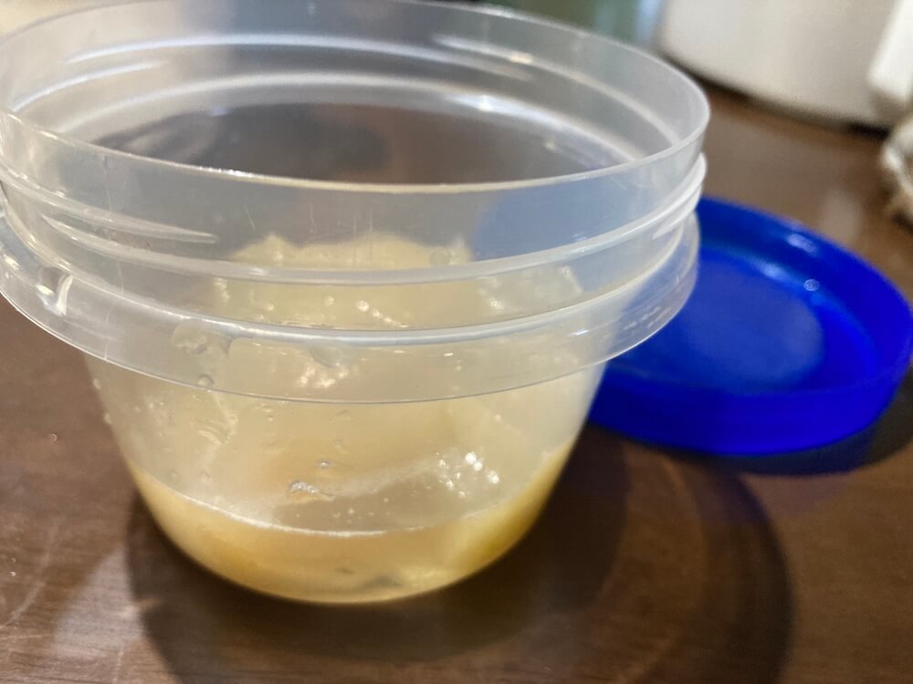 いつもは耐熱ガラス容器に入れるのですが、引越しで既にゆうパックで送った後なので、タッパーに入れています。