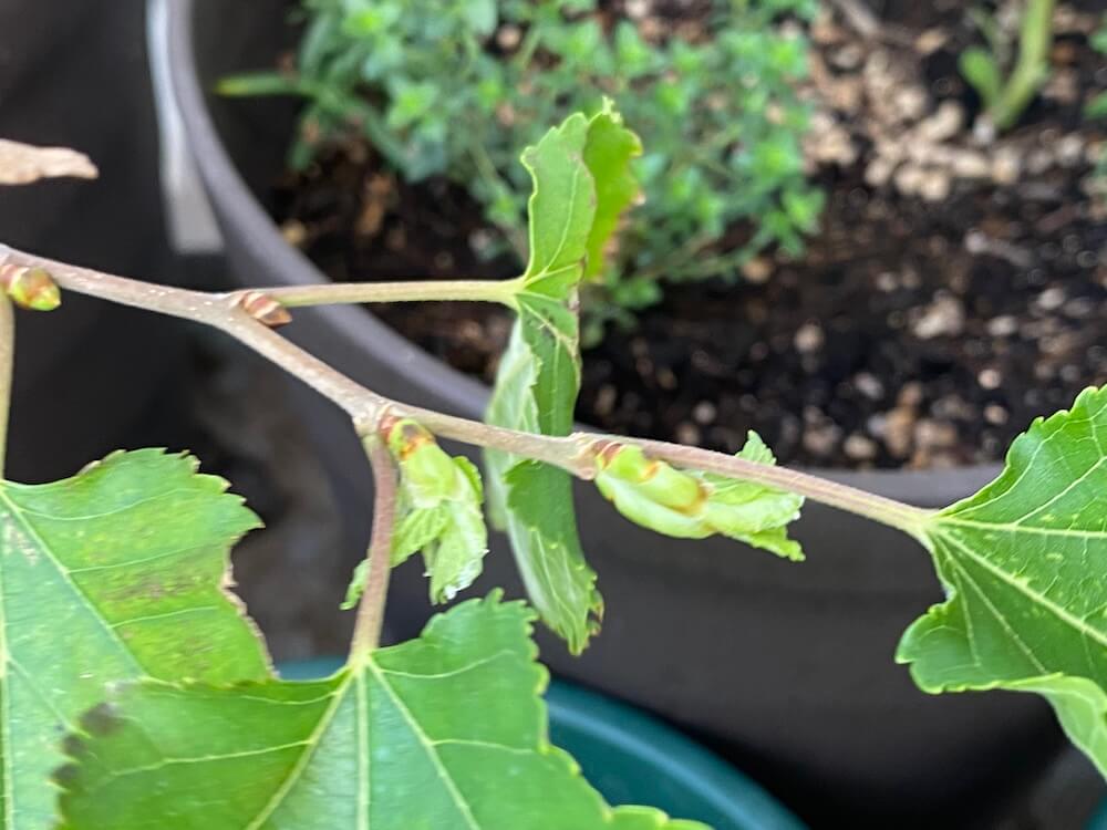 そして、マルベリーの葉っぱも、枯れてきていて、何故だろう?と思っていたら、新たな新芽が出ていました。