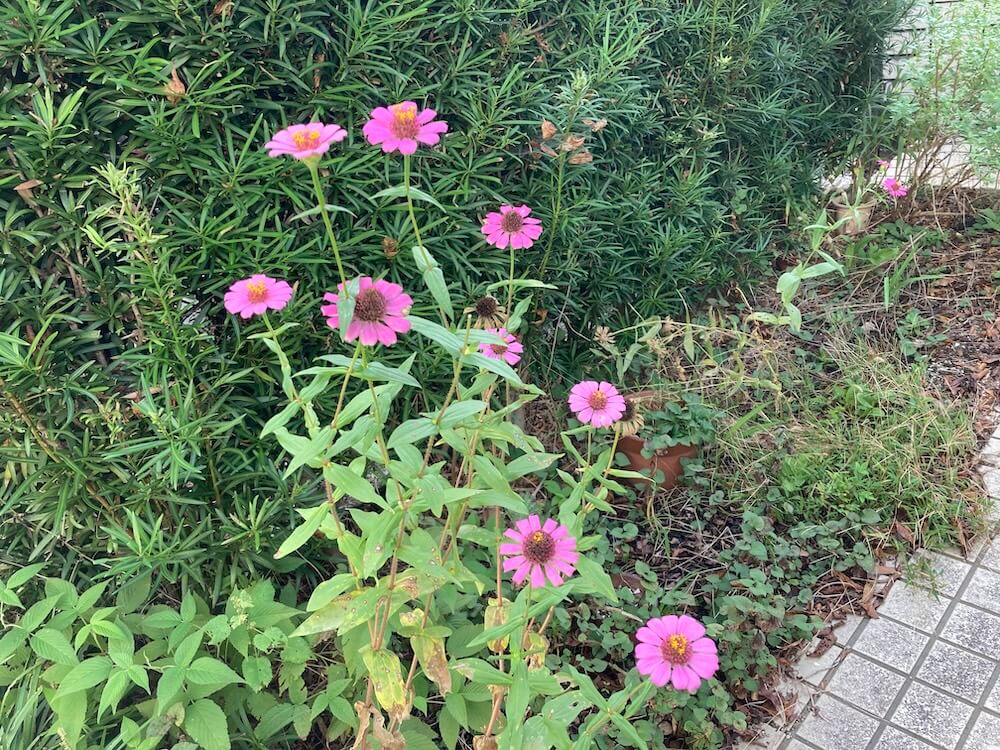 毎日、咲き続けるジニアの花たちを眺めながら、楽しくなっていました。